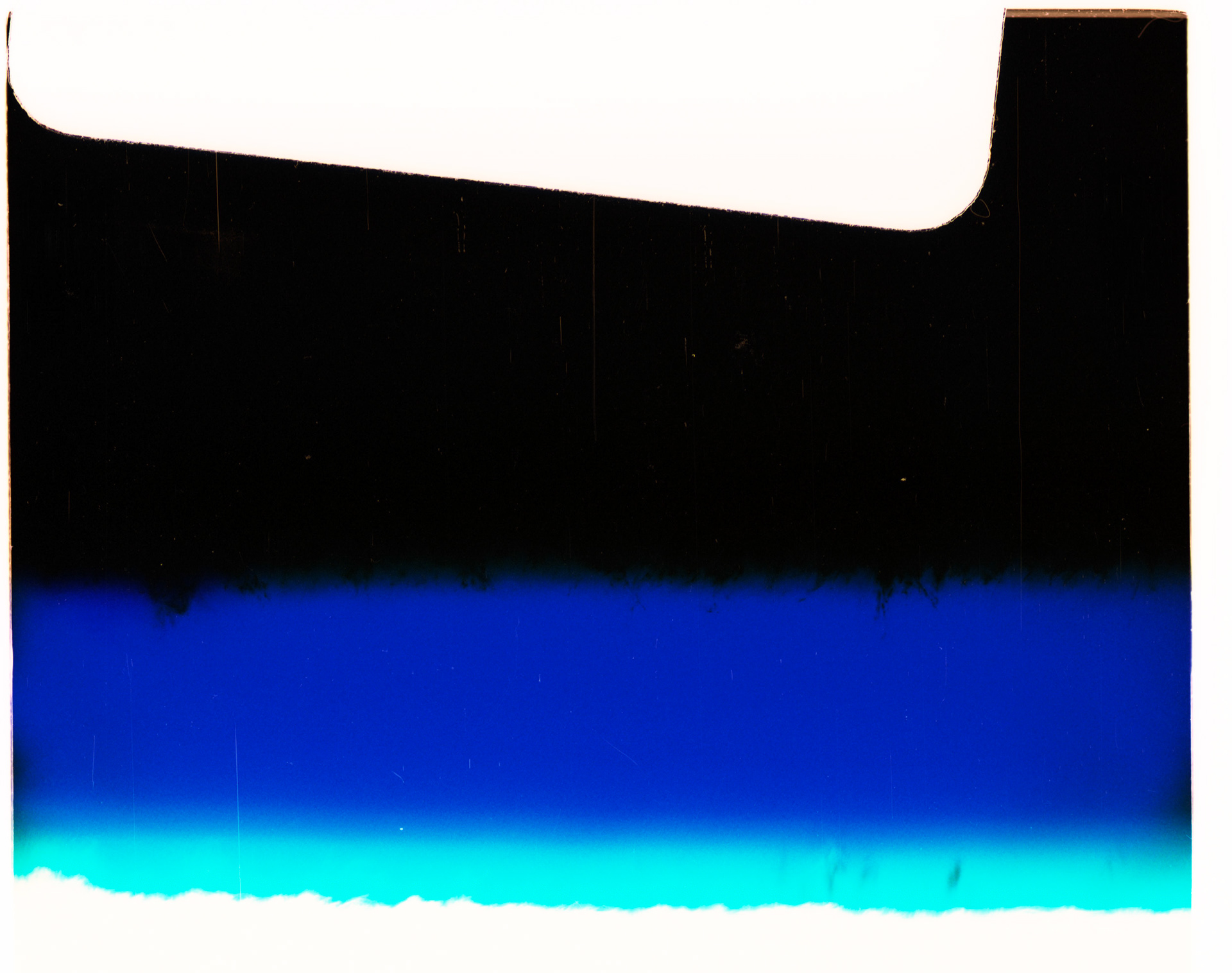 Une photographie qui n’a pas su ou n’a pas voulu enregistrer le mouvement du monde. Sa surface reste entièrement vide, sans qu’aucun élément du réel ne soit venu se poser sur sa surface. Remplir ce vide d’un rêve. D’une imagination collective ou individuelle. De ce que chacun peut néanmoins voir ou ressentir face à ce champ vierge d’information mais chargé de possibilités. Des images en latence derrière cette matière et ces couleurs. Le grain, les morceaux de poussières restés collés à sa surface, les égratignures comme seuls témoins de ce qui est arrivé ou aurait pu arriver. Pour laisser la potentialité de l’image advenir.